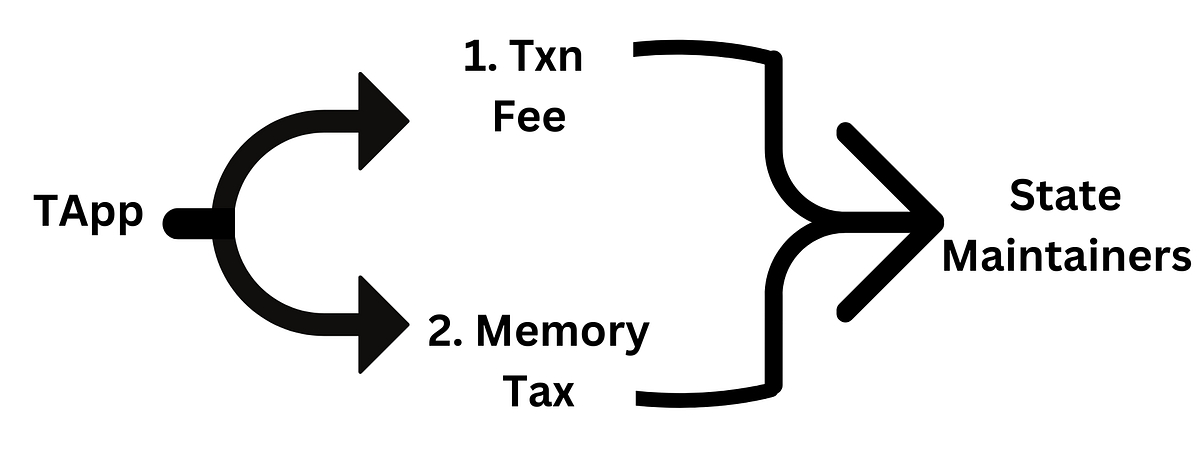Memory tax: TApp pays to the state machine maintainers. This payment is based on computing resources consumed as well as state storage used.