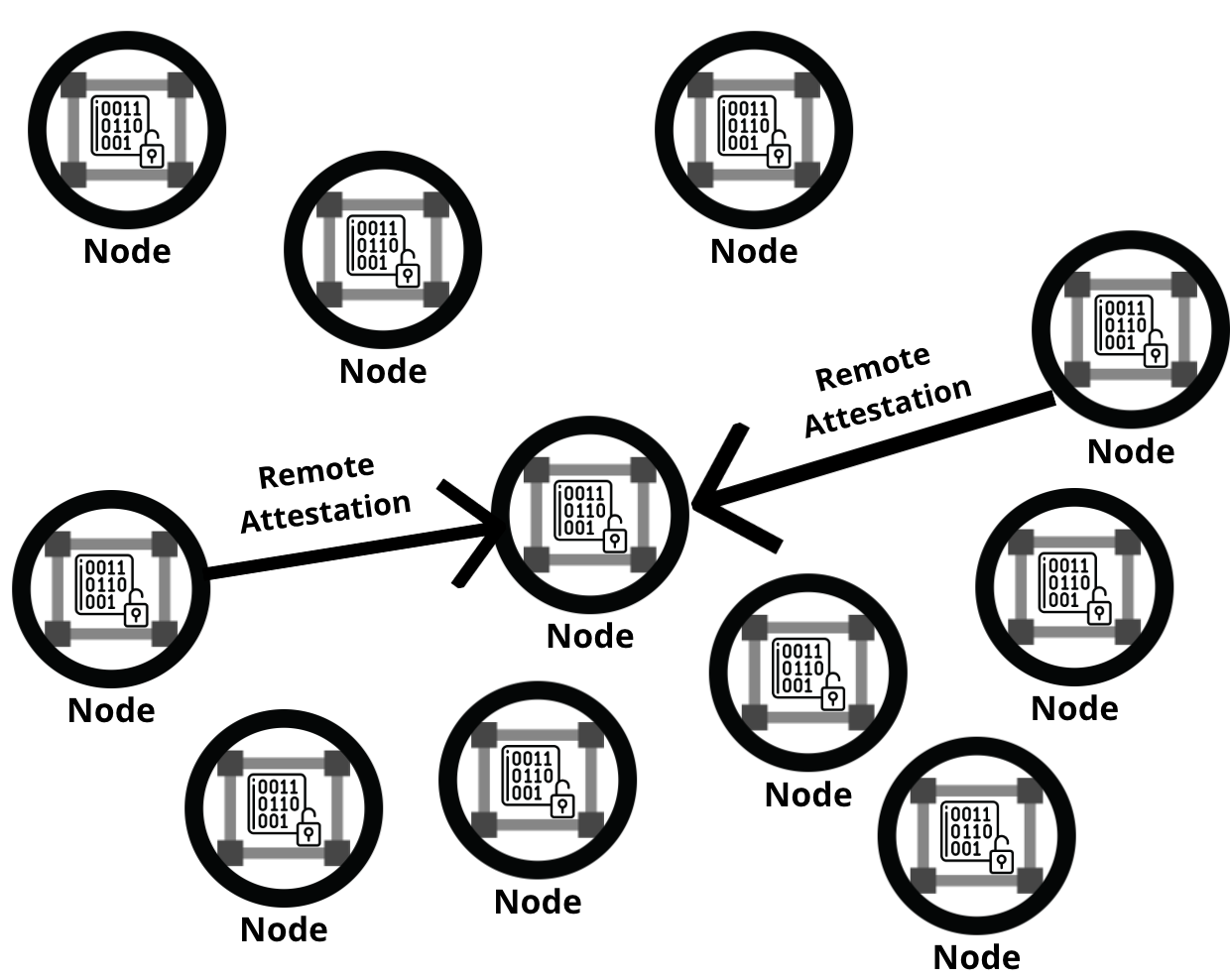 Long before blockchain, hardware integrity remote attestation has been in the IT industry for decades. All cybersecurity engineers know that trusted computing technologies have been used in every computer and most phones. That's how Microsoft and Apple know that your computer is jailbroken or hacked by a boot virus. How it works is that all the hardware that their OS's run on have a trusted computing secure chip called a TPM to record the hashes of your hardware before the OS is loaded. They report those hashes to Microsoft and Apple and validate it there, which in practice is a form of centralized remote attestation. In the blockchain world, we do this all decentralzied, so we just use other nodes as remote attestors. They're randomly selected by a VRF in the layer1 blockchain to reduce the chance of collusion. All those remote attestors make their own decision seperately and report their decision back to the layer1 blockchain. A simple voting procedure stored in a smart contract will determine if a testee is trusted or not.